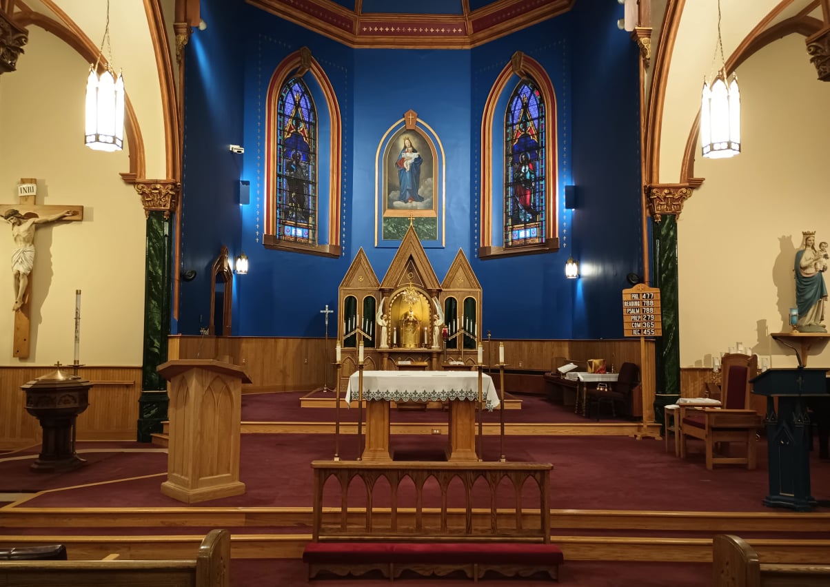 The present structure is St. Mary’s fifth church building. It was constructed in 1881 and dedicated to the Holy Name of Mary by Bishop John Vertin on September 12, 1882. The present rectory was built in 1922.